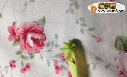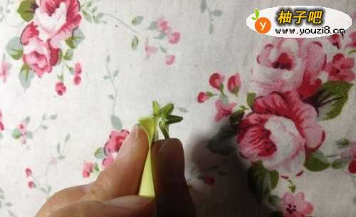 顺着角反复慢慢地折过去,五角星会慢慢就折好了。最后把将多出的一点点棕榈叶可以从空隙处插过去一些,然后你可以剪去多余的部分,也可以不剪,最后一个五角星就折好了。