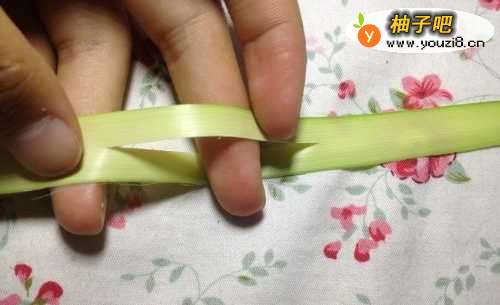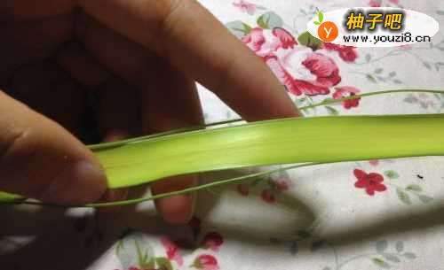 如果这片棕榈叶还比较粗的话,你可以把它分成两半或适当裁减掉一些,使宽度保持在1厘米左右即可,太粗或太细的话都不好折也不美观。按照纹路裁减嫩的棕榈叶是非常方便的。