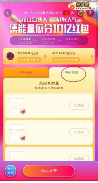 5然后分享出去,让好友点赞,赞数超过别的战队即可瓜分能量(如图);