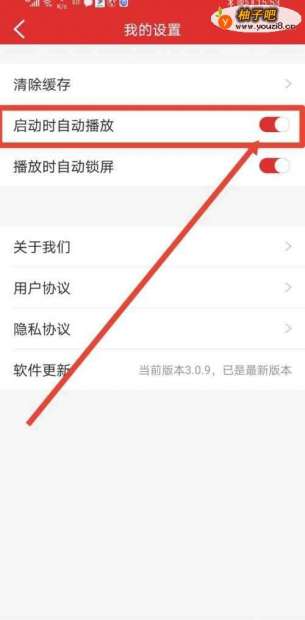 4进入我的设置,然后点击【启动时自动播放】的按钮关闭即可。