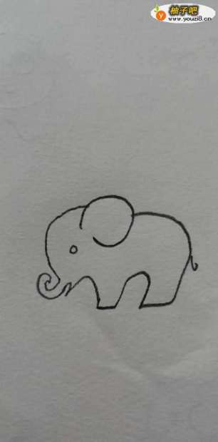 先画一条曲线,螺旋形状的曲线,是大象长长的鼻子。