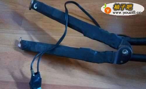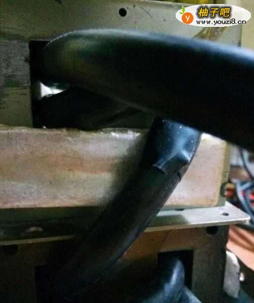 11用热缩管把决缘板,焊机线套在网线钳上当压钳,接上紫铜做的焊极