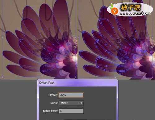 选择这些图形并将它们编组,选择对象——路径——路径偏移,将偏移量调整为-6使得图形收缩。