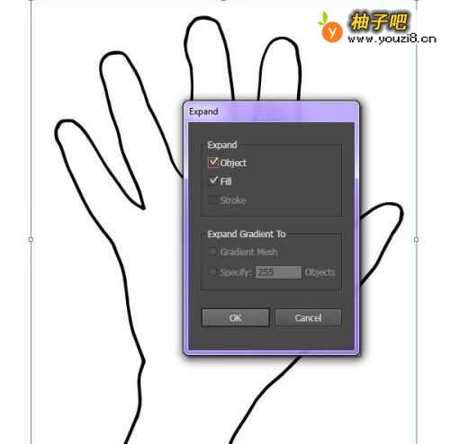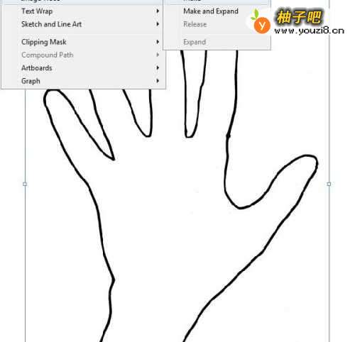 将这个手型轮廓拷贝进一个新文件,然后选择“对象——图像轨迹——创建”来将轮廓线转换为矢量图形。