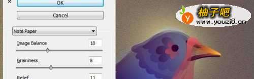 10在背景上绘制一个矩形并选择效果——素描——笔记纸。将图像平衡调整为18,颗粒调整为8,减轻调整为11。根据需要调整不透明度来创造一个更为精细的纹理效果。