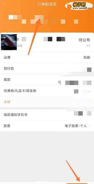 6系统跳转到订单界面,选择好自己的收货地址后,点击箭头处“去付款”。