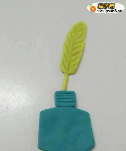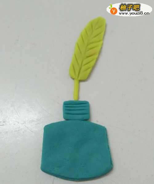 现在我们都用水笔写字,对羽毛笔和墨水瓶感觉挺新鲜,下面就用彩泥捏一个羽毛笔和墨水瓶。