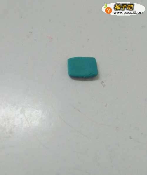 2先用一块蓝色捏一个小的长方形,当作墨水瓶上面的佛改瓶口。