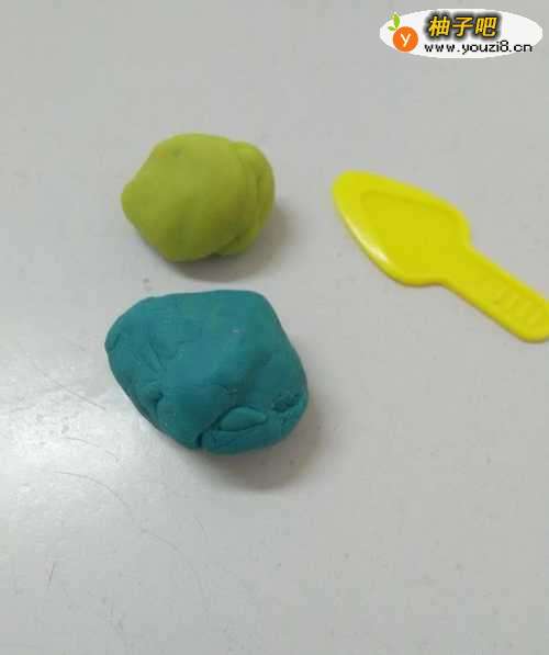 准备蓝黄两种颜色的彩泥和小刀肤互艳。