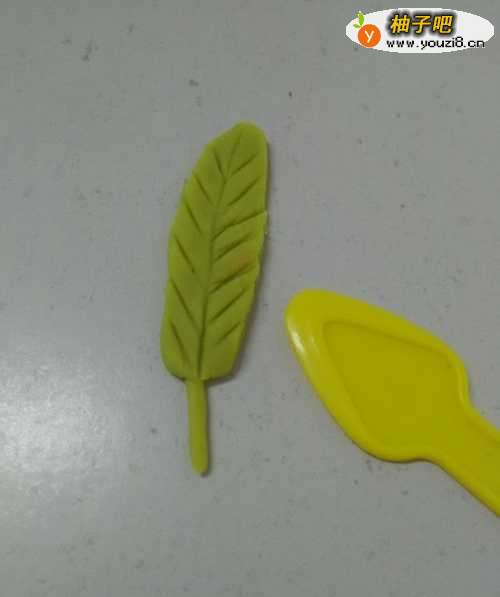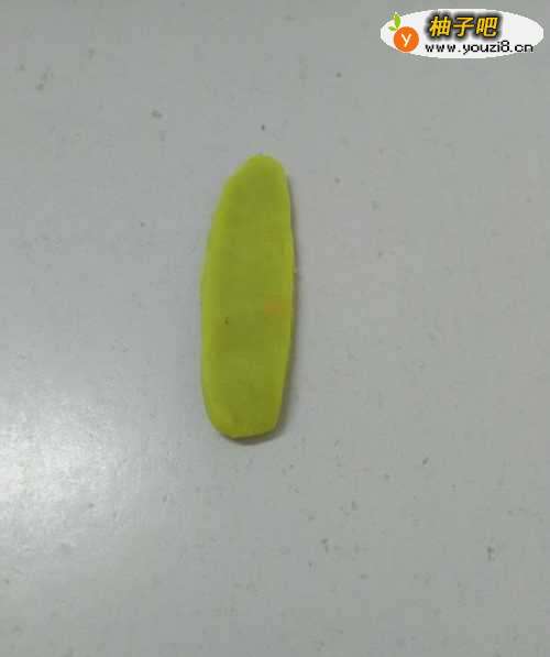 5用黄彩泥捏一个长长的椭圆形,当作羽毛。
