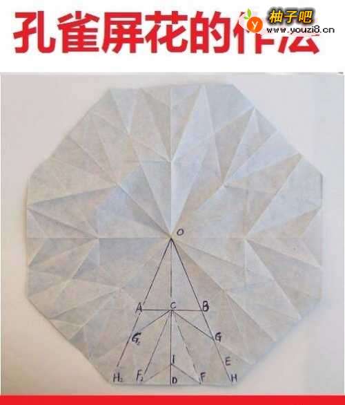 2正8边形的每边折向其中点,每宋码边留下2格段的横线,折线连成小的正8边形,全部展开,再将正8边形的中垂线为对称轴,下边折向上边;