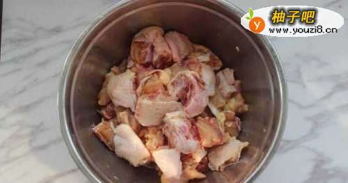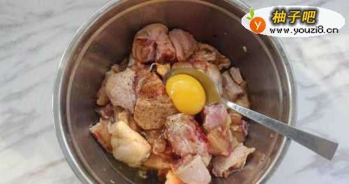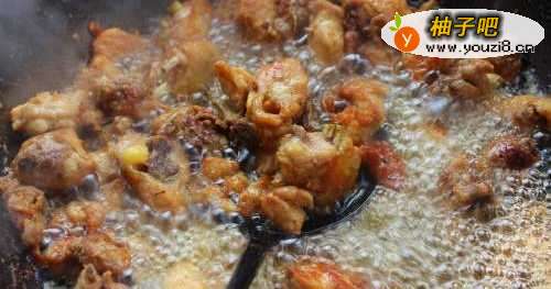 5炒锅多点油,放入腌好的鸡块,中火炸