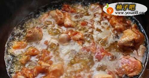 9烹入调好的料汁,盖上锅盖焖5分钟左右。