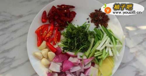 7锅里留点底油,爆香蒜,洋葱,姜,干辣椒,花椒。