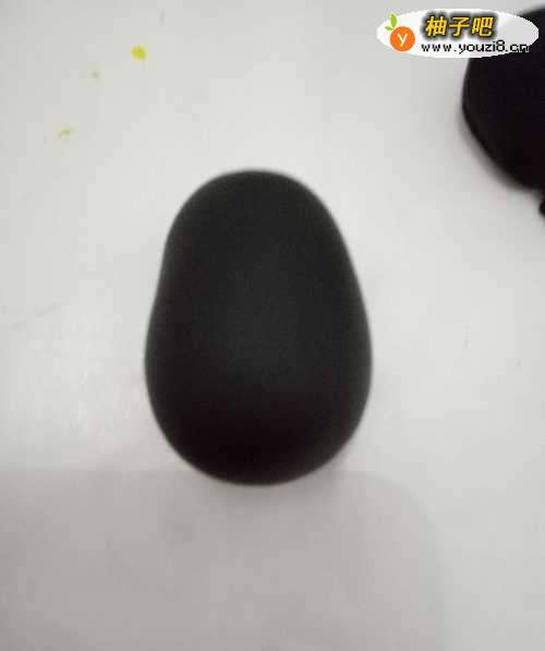 首先,取黑色黏土反复揉搓,搓成下图所示,上窄下宽的椭球形作为企鹅身子