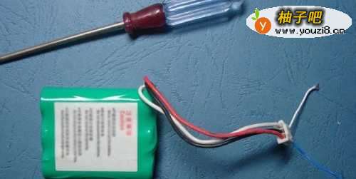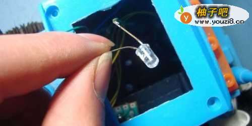 6最后,把两段小电线连接在电池组上,并连接在Led灯上,如果灯亮了表示可以使用,就可以取下制作简单的电路了,通过这样的操作,就可以从电子玩具中取Led灯来使用了,如下图所示。