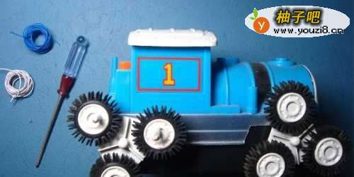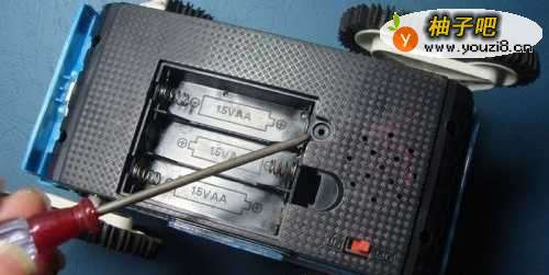 准备好和小起子和旧的电子玩具,并用小起子把玩具车的电池盖打开,如下图所示。