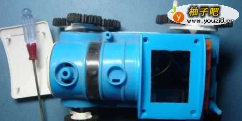3然后,在玩具车中有电路板和电动机、LED灯等电子零件,可以仔细查看,如下图所示。