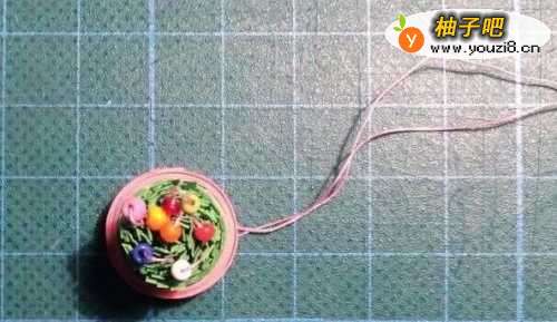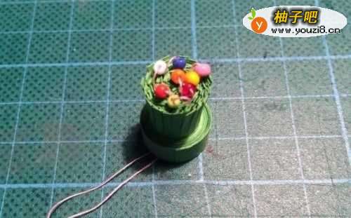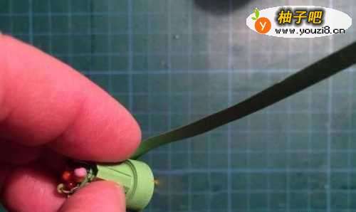 8第8步:接着用另外一根细细的衍纸纸条来将底下包好