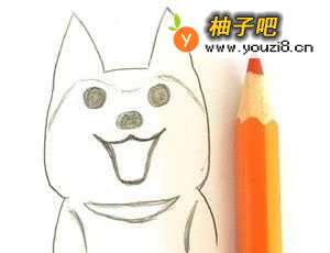 2二画出开口笑小狗的眼睛、嘴巴、鼻子形状。