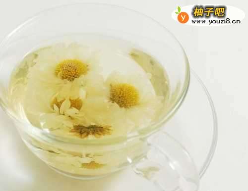 2第二步,取出一只碗,将杭白菊装进碗里,倒入开水,漫过杭白菊,搅拌均匀即可。