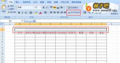 5然后我们选择表格上方的单元格,如图所示,之后我们点击合并后居中;