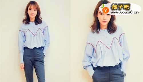 头发的长度刚刚过肩,属于中长发,将发尾进行微卷处理,稍微的加上一点微翘,搭配上空气刘海很是修饰长脸的缺陷,同时提升整个人的气质。