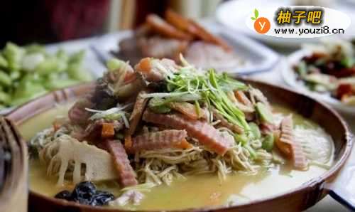 不能不吃盐水鸭的。南京嗜鸭之深,乃至有人说南京人前辈子都跟鸭子有仇。不管这个传言有没有根据,但是南京被称为“鸭都”却是实打实的名头。盐水鸭是南京有名的特产,久负盛名,据说至今已有一千多年的历史。南京盐水鸭皮白肉嫩、肥而不腻、鲜香美味,具有香、酥、嫩的特点。每年中秋前后的盐水鸭色味最佳,是因为鸭在桂花盛开季节制作,故美名日:桂花鸭。《白门食谱》记载:“金陵八月时期,盐水鸭最著名,人人以为肉内有桂花香也。”逢年过节或平日家中来客,上街去斩一碗盐水鸭,似乎已成了南京世俗的礼节。