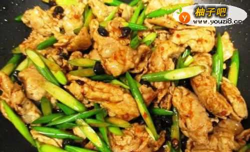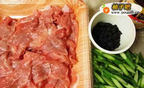 后腿肉切掉皮。青蒜切斜片备用,豆豉和豆瓣酱可以切细一点。