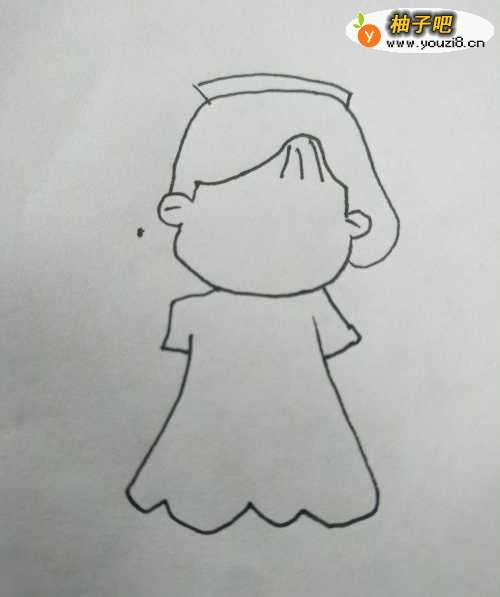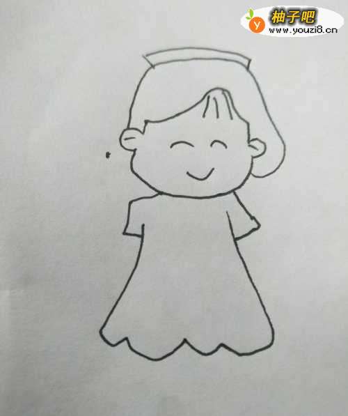 3第三步,接着小护士的头部下面画上小护士的裙子。