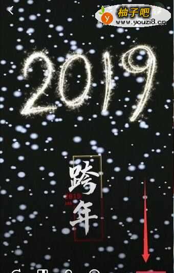 6然后在选择一个有 跨年字样的 贴纸放在2019下方,调整好大小之后点击下一步,然后发布视频就可以啦,如下图