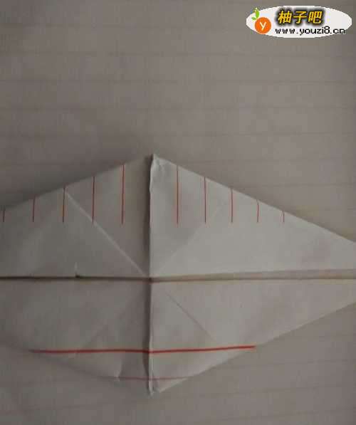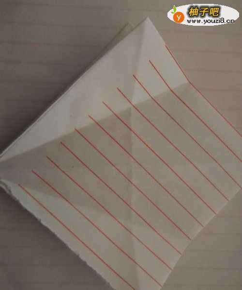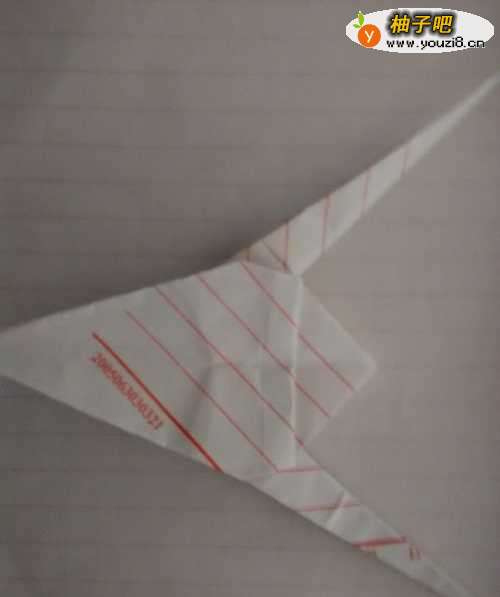 9如下第一幅折叠。注意,折好后是分叉的,如第二幅。