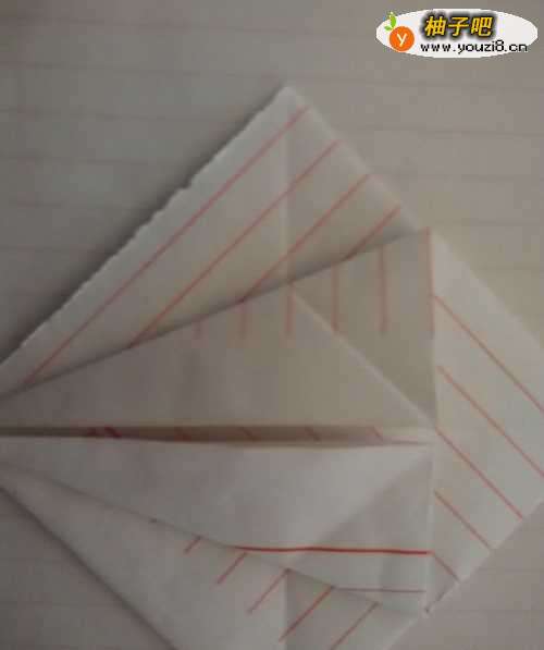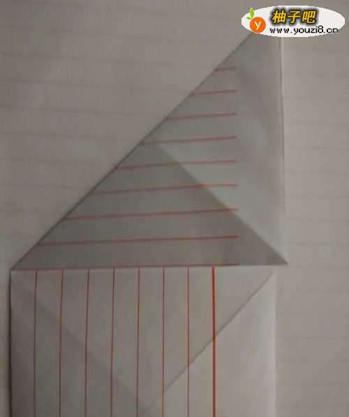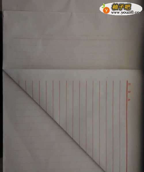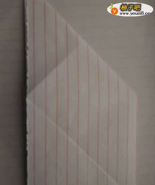 4翻到背面,如下第一幅,再如第二幅折叠,同样时没开口的角。