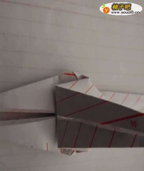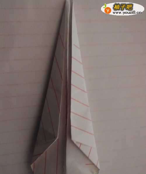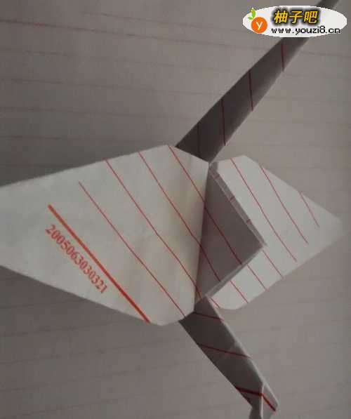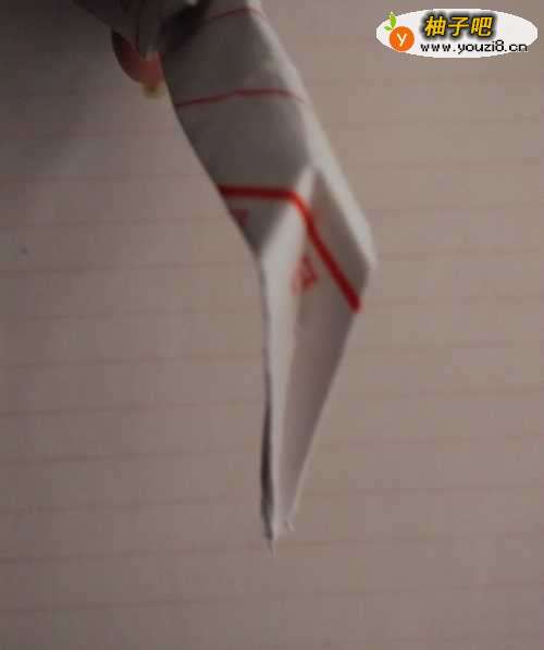13最后将其中一个的尖角折叠成下图,这就是千纸鹤的头部了。