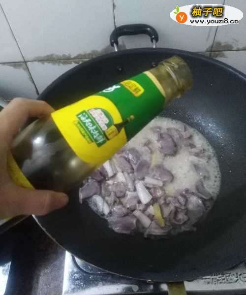 8加入水,倒入一些蚝油生抽还有盐。翻炒均匀。