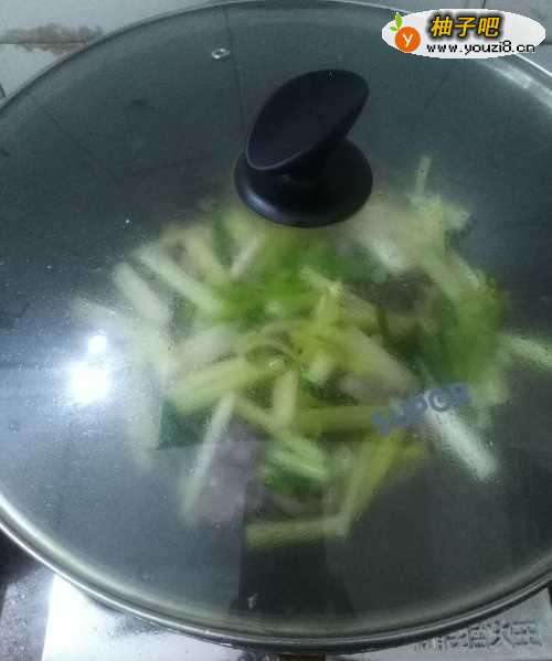 9翻炒均匀,盖上锅盖。煮两分钟。