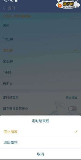 5歌曲播放完成后的两种选择,一种是退出酷狗,一种是停止播放