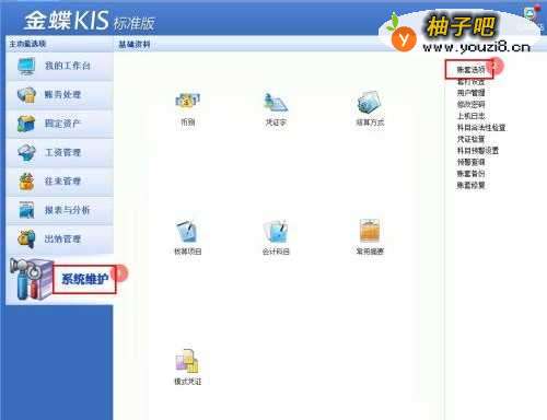 2在功能菜单,单击选择【系统维护】-【账套选项】;