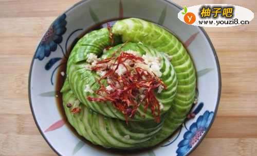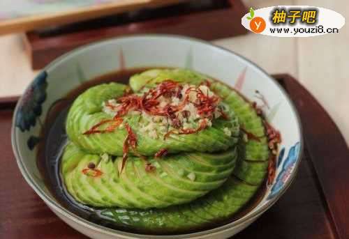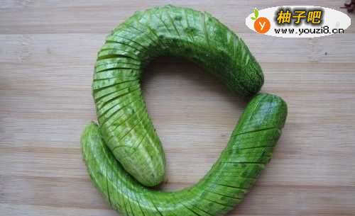 蓑衣黄瓜,家常风味凉菜,主要是考验烹饪者刀工,尤其是蓑衣花刀的切法。蓑衣形花刀,在原料的一面如麦穗形花刀那样剞一遍,再把原料翻过来,用推刀法剞一遍,其刀纹与正面斜十字刀纹成交叉纹,两面的刀纹深度约原料的五分之四,,经过这样加工的原料提起来两面通孔成蓑衣状。
