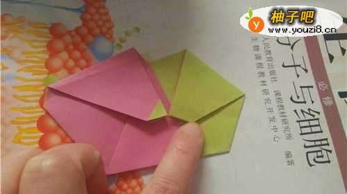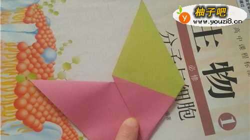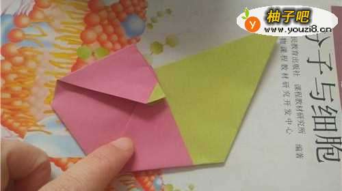 5把这一个小角也折到里边去,如图一。把上面的两个角分别向下折,如图二。