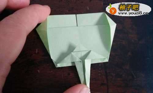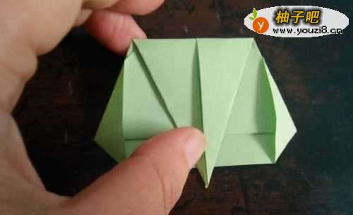 5把尖角两侧的边向内折,顺势把上部分的角平折,再把周围所有的角都向内折一点。