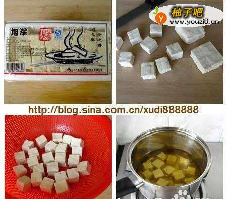 臭豆腐洗净,切成小块,漓干水分;