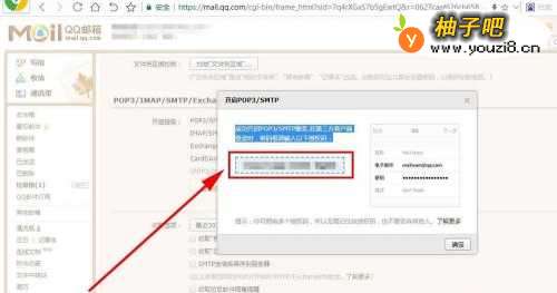 6系统会自动反馈一段密码,这段密码就是用于邮件客户端登录时用的独立密码,记录下来后,POP3/IMAP/SMTP服务就会开启。