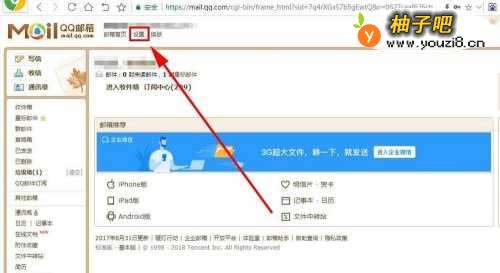 2进入QQ邮箱主界面后,找到最上面的“设置”,点击打开它