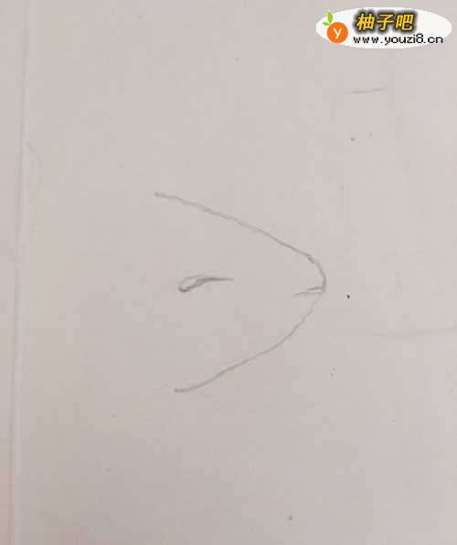 第一步 先画出鲨鱼头部的一小部分 和它的鼻子孔