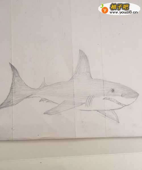 5第五步 再画上鲨鱼的尾鳍 这样鲨鱼的基本草图就好了
