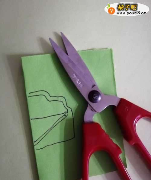 6第六步,用剪刀把画好的手提包剪裁出来。