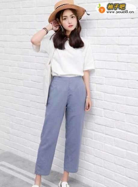 搭配四:灰色八分阔腿裤+白色棉麻短袖这款灰色八分阔腿裤是棉麻的质地,很舒适、凉快,搭配一件相同质地的白色棉麻短袖,随性、舒适又大方。