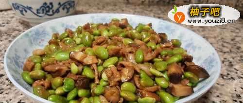 7开大火翻炒均匀后,关火起锅。香喷喷的肉丝香菇炒毛豆就出炉了。