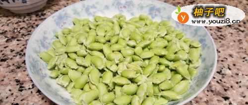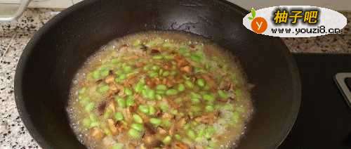 5加入毛豆,翻炒均匀后,加水至与毛豆齐平。